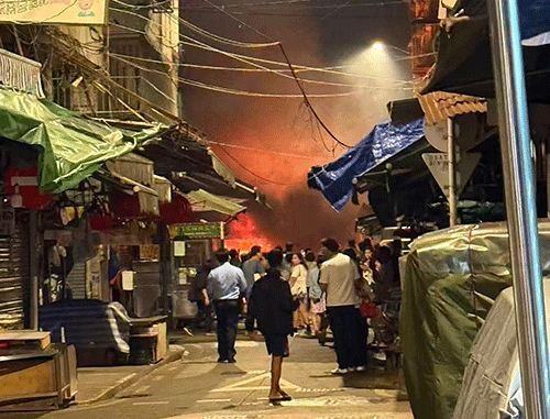 群隊街小販檔燒燬