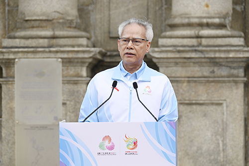 岑浩輝在收火儀式上致辭表示,在全運聖火的映照下,共同見證第十五屆全國運動會澳門賽區火炬傳遞的圓滿完成。全運聖火象徵光明與希望,火炬傳遞,是精神的傳遞,更是力量的凝聚。聖火穿越澳門的大街小巷,由50位火炬手接力相傳,每一步都展現了澳門奮發同行的城市風采,每一次交接都傳承團結拼搏的體育精神。此刻,聖火在大三巴牌坊前匯聚,共同點亮了“灣區同心 全運同行”的璀璨之光。