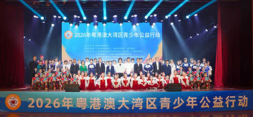 由中國宋慶齡基金會主辦,廣東省宋慶齡基金會、香港宋慶齡基金、澳門基金會聯合主辦,澳門特區教育及青年發展局支持的2026年“粵港澳大灣區青少年公益行動”於3月21日上午在東莞中學高中校區體育館正式啟動。