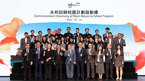 為積極響應澳門特區政府的“人才優先”政策,永利與澳門中華總商會附設商訓學校合作推出“永利回歸校園計劃”,為團隊成員提供重返校園修畢中學課程的機會。課程由商訓學校編製及教授,與澳門日間中學課程銜接,讓完成課程的學員可選擇報讀大專院校作進一步深造。為支持學員在職進修,永利特別在後勤區設置課室和教學設備,並靈活調整團隊成員工作時間,充分體現公司對團隊成員福祉與職涯發展的重視。