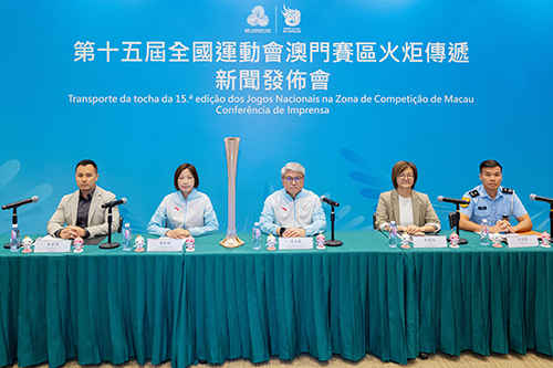第十五屆全國運動會澳門賽區火炬傳遞新聞發佈會於昨日中午12時在澳門東亞運動會體育館旁的運動員培訓及集訓中心地面層演講廳舉行,澳門賽區籌備辦公室主任潘永權、副主任傅斯娜,旅遊局旅遊推廣廳廳長劉鳳池,交通事務局協調處處長麥豪傑及治安警察局警司何嘉傑出席,介紹活動內容以及公佈當天交通管制措施等安排。