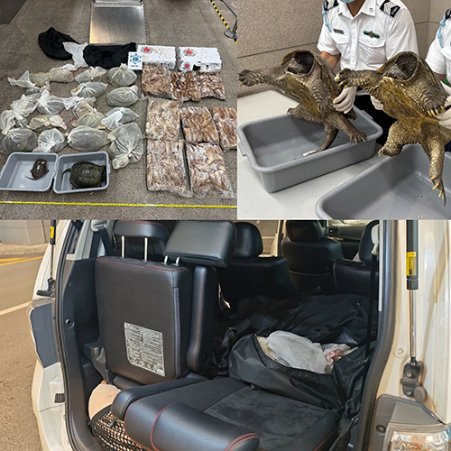 10月26日,關員在關閘口岸出境旅客檢查區先後發現兩名男性內地居民形跡可疑,檢查後揭發該兩名男子將26件舊電子產品藏於身體多處,試圖將之偷運出境。同日,海關人員透過風險管理系統的預警佈控,在關閘口岸出境車道截查一輛跨境車輛,駕駛者為本澳男子,經檢查,發現其試圖將20隻活龜及95公斤動物毛皮偷運出境。