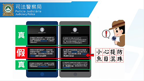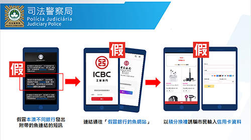 據司警介紹,騙徒的作案手法主要為假冒本澳不同銀行並以“積分到期”為名發出釣魚短訊,短訊內附有“假銀行網站”連結,誘使市民點入連結及提供個人、銀行卡資料、驗證碼以換取禮物,從而利用套取所得的資料大額消費,市民稍一不慎便會上當受騙。此外,騙徒亦會冒用銀行官方電話號碼作為發送號碼,當智能手機收到有關短訊時,會誤判發送的是銀行號碼,自動歸入本身的對話框內,導致釣魚短訊和真實短訊合併在一起,令市民無法分辨。