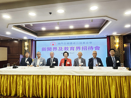公益基金會昨日傍晚6時假嘉年華酒樓舉行新聞界及教育界招待會。會長賀定一,理事長黃國勝,副會長飛安達、陸波、黃如楷、許建章及副理事長陳敬濂列席主席台,介紹會務工作及本年度百萬行活動詳情。