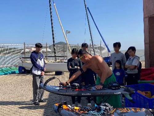 新濠親子與望廈青年之家共同參與是次活動,向本地青年介紹迅速崛起的動力衝浪板運動。澳門動力衝浪板協會的團隊向參加者講解該運動的背景和歷史,並詳細介紹即將舉行的澳門格蘭披治動力衝浪板賽道設置及其安全要求。參加者親身體驗動力衝浪板水上試行,全面感受這項運動的刺激與樂趣,並獲邀於黑沙海灘觀賞“2025 UIM澳門格蘭披治動力衝浪板世界錦標賽總決賽”。