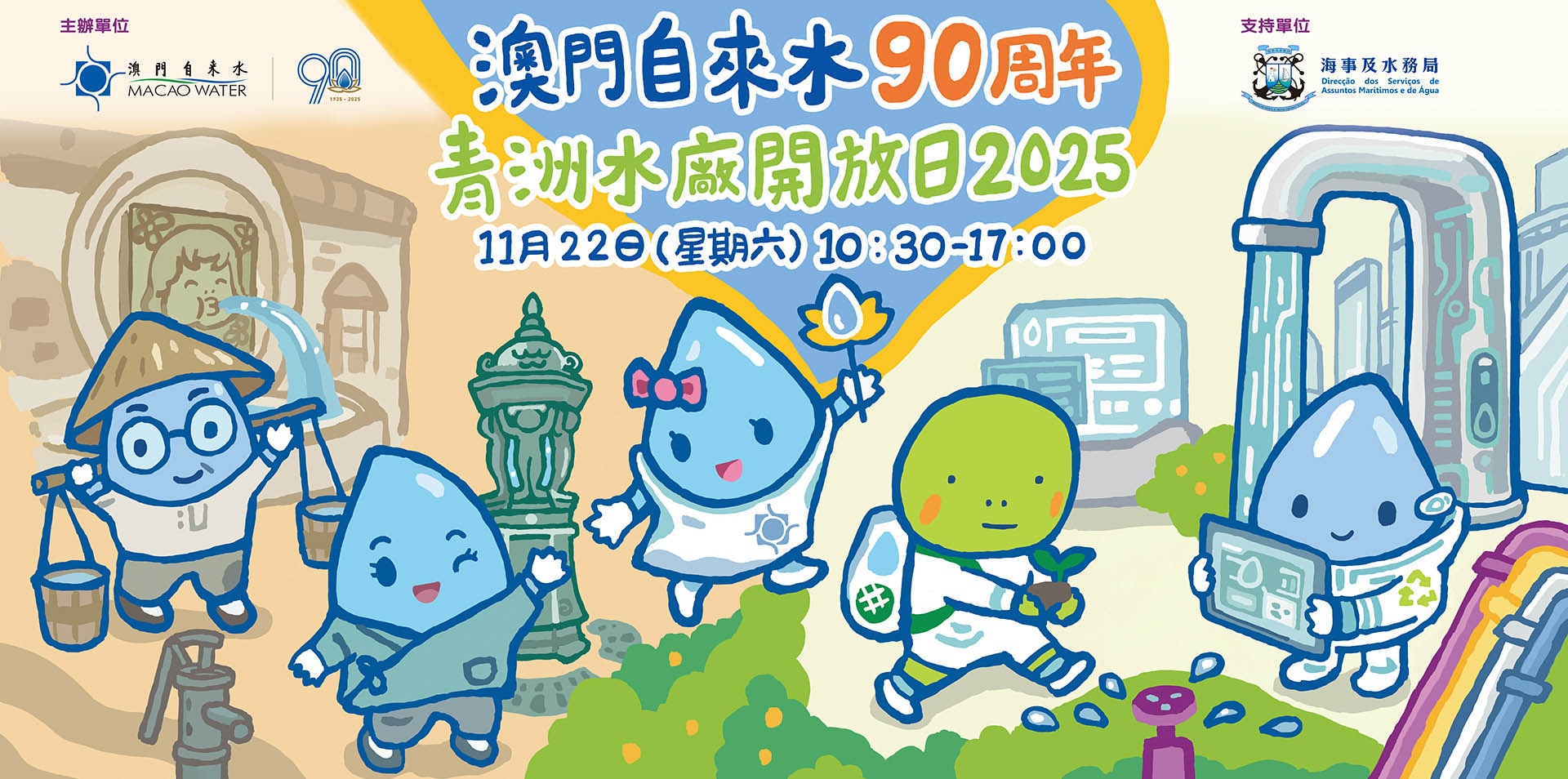 【本報訊】由澳門自來水主辦、海事及水務局支持的“澳門自來水90周年──青洲水廠開放日”定於11月22日上午10時30分至下午5時舉辦,並將於上午11時30分舉行開幕式暨“水.彩畫”繪畫比賽及“2025特奧游泳賽”特別獎的頒獎儀式。活動設有攤位遊戲、主題工作坊及供水設備操作體驗,免費入場,歡迎市民參加。公司希望透過開放日讓市民深入了解供水流程及節約用水等知識,推動高效用水、珍惜水資源的理念和習慣。