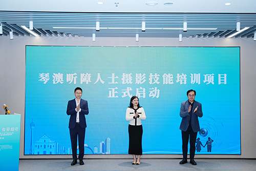 隨後,嘉賓共同上台啟動琴澳聽障人士攝影技能培訓項目。啟動儀式結束後,首場攝影技能培訓拉開帷幕,幫助聽障人士掌握基礎攝影技巧,提升職業技能。培訓邀請到知名攝影公益品牌“快門無聲”聽障青少年攝影培養計劃創始人朱習擔綱首講,通過攝影這一視覺藝術,為琴澳聽障人士搭建表達自我、連接社會的平台,進一步增強其社會參與感與自我價值實現。
