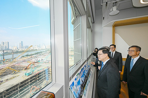 李家超亦介紹園區發展體現的關鍵進展。具體而言,園區三座大樓在3月平頂至今的9個月以來,兩座濕實驗室大樓已有超過60間來自海外、內地及香港的企業和機構簽署租約,已租出約8成的樓面面積。園區設有生物樣本庫、數據中心等讓租戶使用的共用設施,同時,園區的人才公寓亦已迎來首批住客。