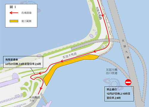 友誼大橋往中區方向匝道週六晚臨時封閉