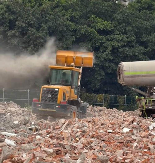 事件源於一段網絡熱傳視頻,畫面顯示一台霧炮機(被誤稱為“吹風機”)對準鏟車高舉的泥土猛烈吹風,導致大量沙塵彌漫整片街區。附近商戶反映,事發當日整條街被塵土籠罩,無法正常營業。有商戶指出,該區域屬南洲創業園,已於去年5月被納入廣州新中軸海珠片區徵收改造範圍,此前已收到搬遷通知,此次揚塵疑似與拆遷推進有關。