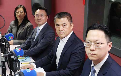 林煒浩、交通事務局代副局長莫垂道、環境保護局環境規劃評估廳廳長陳美寶、輕軌公司董事吳景松昨日出席電台時事節目《澳門講場》與市民探討輕軌發展策略。