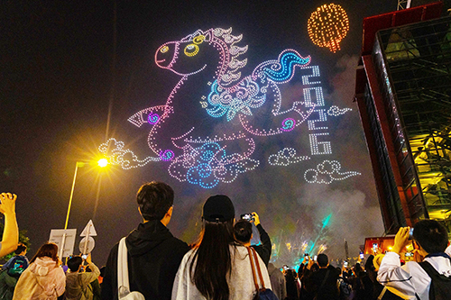 首場“金駿雲翔 歡樂春節”2026無人機煙花匯演已在年初三晚璀璨上演。第二場匯演將於今晚9時於旅遊塔對出海面絢麗舉行,歷時約15分鐘的無人機融合煙花的表演,在“人日”當晚祝願大家喜樂安康。第三場匯演則安排在正月十五(3月3日)晚上9時舉行,和觀眾一同共度元宵佳節。