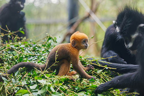 據悉,廣州長隆野生動物世界共保育有56種靈長類動物,是全球種類最多的靈長類保育基地之一。其中,保育21隻黑葉猴,曾成功繁育世界首例黑葉猴龍鳳胎。