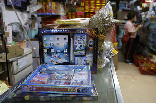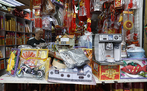 紙紮店俊城行老闆杜千送告訴記者,新品如機器狗、AI產品、智能手機、新能源汽車都是近年興起的祭品,而這些產品一般為年輕人購買居多。