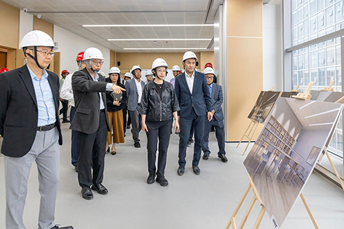 柯嵐一行先抵達位於合作區的大學城第一期項目設施進行考察。有關項目建築面積約6萬5千平方米,改造裝修工程現正進行,澳門大學、澳門理工大學、澳門旅遊大學預計於今年8至9月期間入駐,開展研究生教學活動。