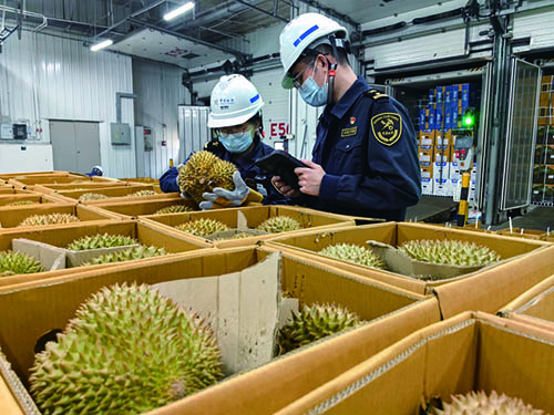 據廣州海關所屬南沙海關相關負責人介紹,隨著東南亞榴槤主產區全面進入盛果期,廣州南沙口岸的榴槤進口旺季仍將持續。南沙海關統計顯示,自4月15日今年榴槤季首票鮮食榴槤進口以來,截至4月26日,南沙海關已累計監管進口鮮食榴槤超過9,500噸。